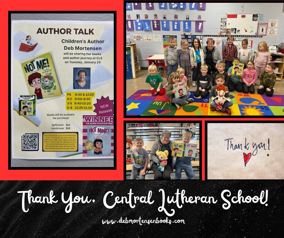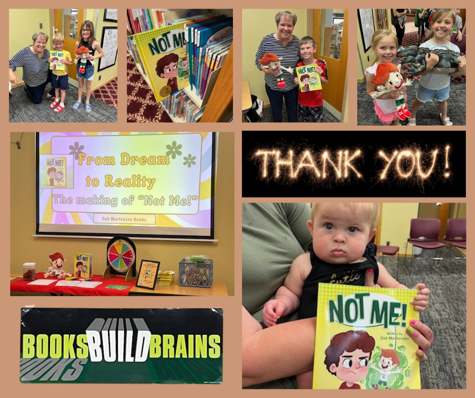 Welcome to Deb Mortensen Books. Join the excitement as Deb brings her stories, Not Me! and Not Mine!, to life during interactive readings in libraries and schools. Stay up to date on future events!
